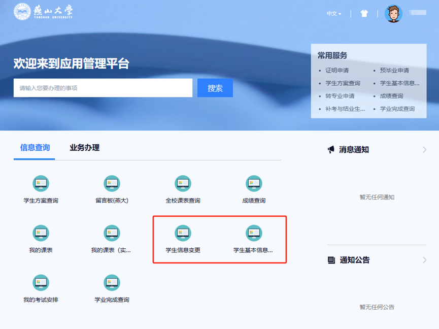 为规范学生信息查询变更办理工作,提升学籍管理工作信息化水平,本科教务系统启用线上学生信息查询变更办理应用。具体办理方式如下。