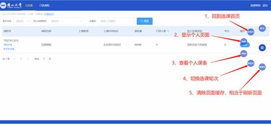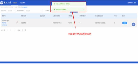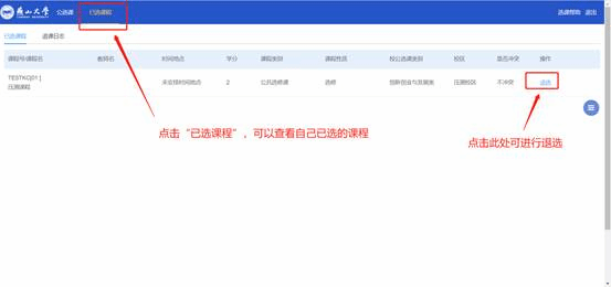成功选课的课程可以在“已选课程”中查看,可进行退课操作(该操作需要改轮次允许退课)